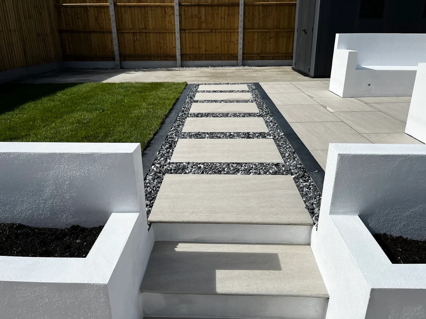 Natural stone, porcelain, block paving, and concrete patios installed to a high standard — beautiful, durable outdoor surfaces built to last.